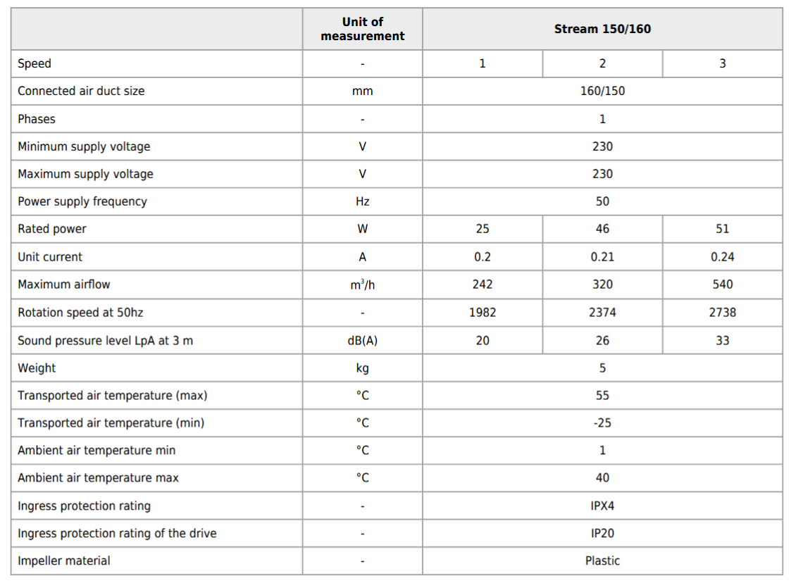 Vents Stream 150/160 — ventilator turbionar silențios cu izolare fonică, destinat ventilației eficiente în spații rezidențiale și comerciale.