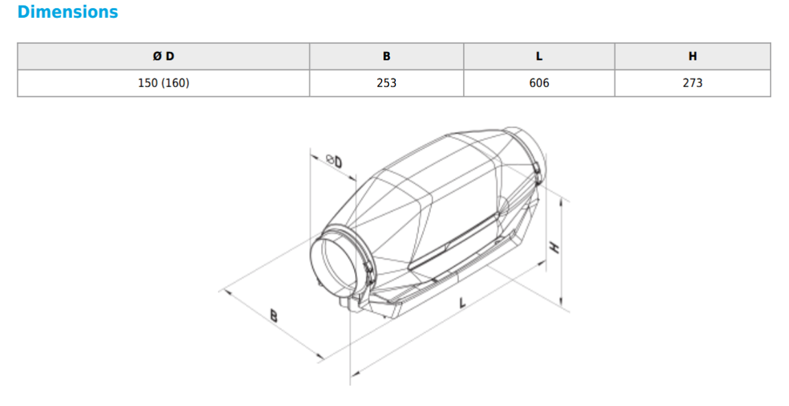 Modelul este compatibil cu tubulatură rotundă de 150 și 160 mm și este echipat cu motor AC cu trei viteze. Datorită nivelului scăzut de zgomot (20–33 dB), este recomandat pentru locuințe, cabinete, instituții educaționale, cafenele, hoteluri, birouri in sera.